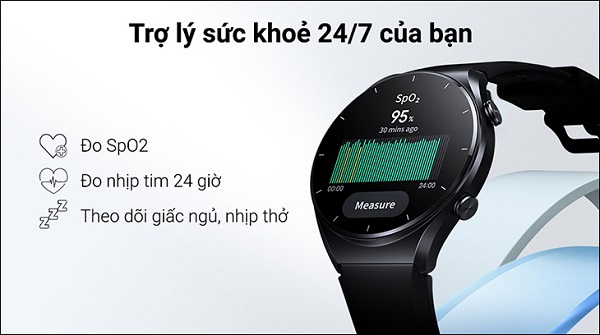 • Tiện ích đặc biệt: Theo dõi sức khoẻ và tập luyện nâng cao, Phân tích linh hoạt về nhịp tim, SpO₂, giấc ngủ, v.v